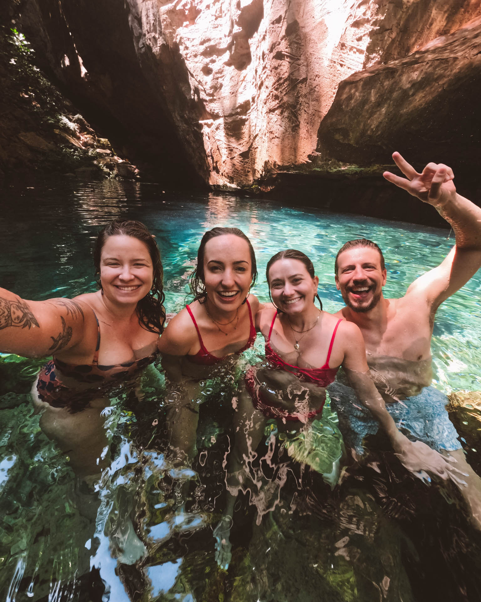 Fomos os primeiros a chegar no Poço Azul porque nos hospedamos no complexo turístico do Poço Azul. Quem organizou todo o nosso roteiro e nossas hospedagens em um pacote super completo foi a Torre da Lua Ecoturismo!