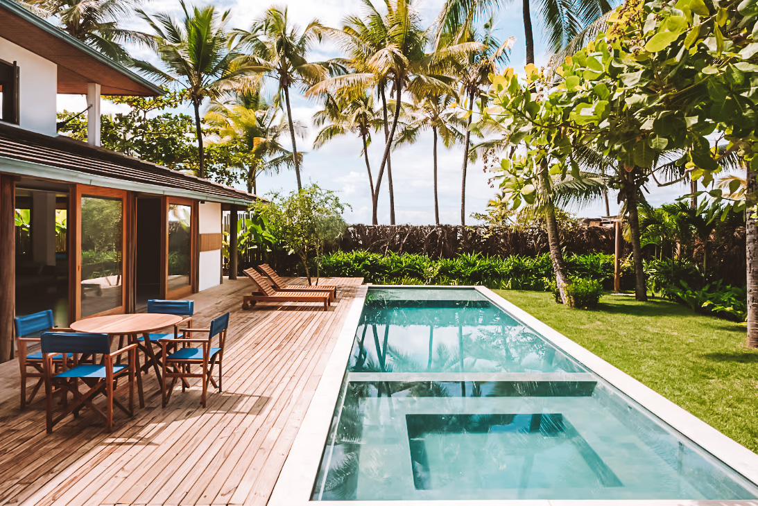Para começar, a Casa We Love fica em um enorme gramado à beira mar! São 6 suítes todas com ar condicionado, cozinha equipada, cinema, fogueira, barzinho no quintal com freezer e pelo terreno há diversos coqueiros e árvores frutíferas. Há cachoeiras por perto também. Lifestyle perfeito na natureza!