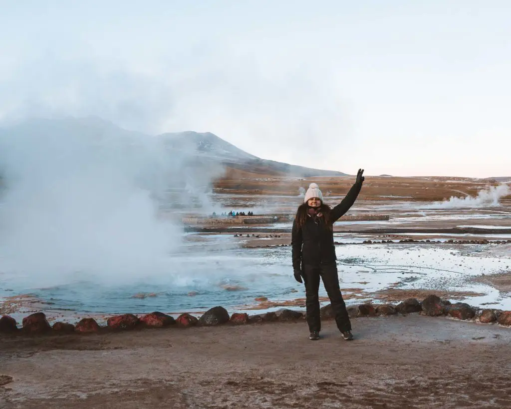 Os gêiseres de El Tatio são outro destaque imperdível. Chegue cedo e assista o vapor quente contrastando com o ar gelado da manhã, em um espetáculo natural inesquecível. Para um toque de relaxamento, as Termas de Puritama oferecem águas termais serenas em meio a um desfiladeiro pitoresco.