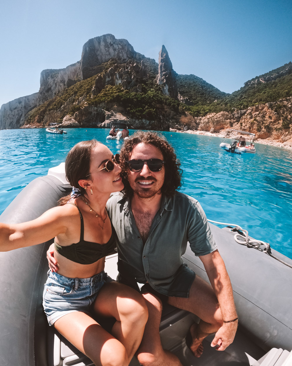 Além da trilha, outra forma de se chegar a Cala Goloritze é de barco. Contudo, as embarcações não podem atracar na praia. Por isso, muitas pessoas ancoram na linha de 300m e vão nadando até a praia. Foi o que fizemos, pois não reservamos a trilha com antecedência e queríamos muito conhecer essa praia.