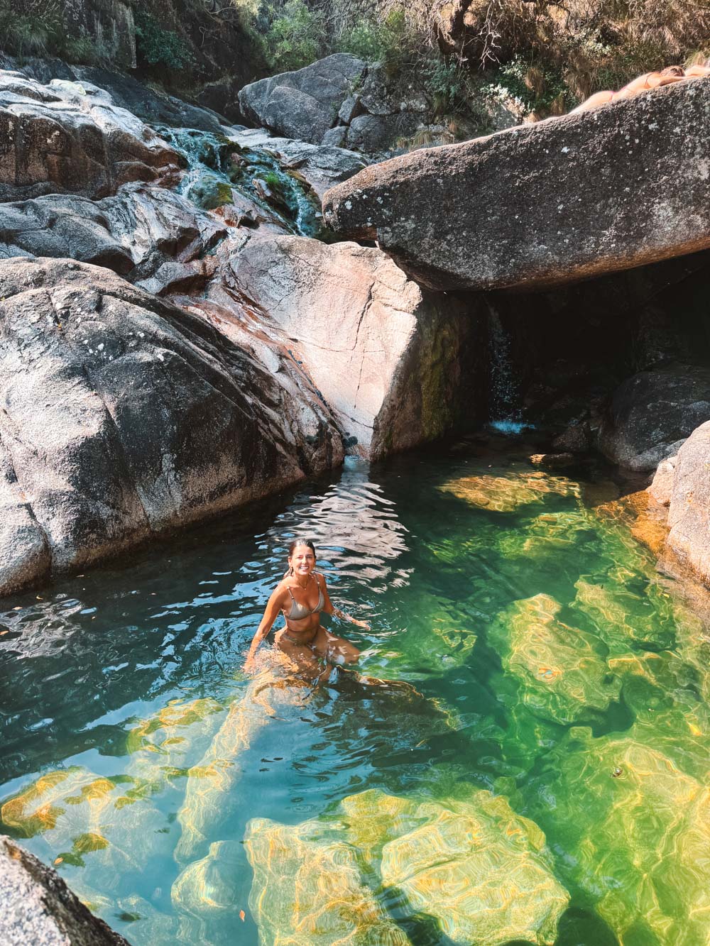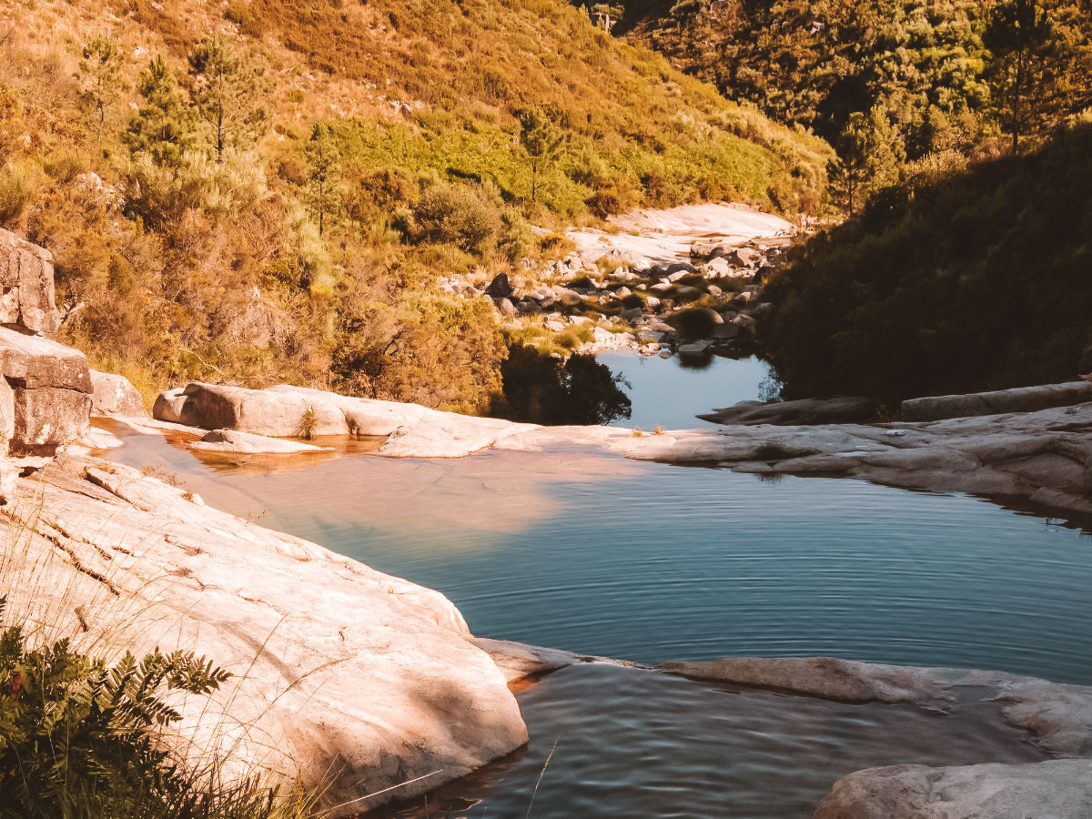 | Visitar a belíssima Cascata Portela do Homem | Piscinas naturais de águas esmeralda, acesso simples e cenário fotogênico na Mata da Albergaria. |