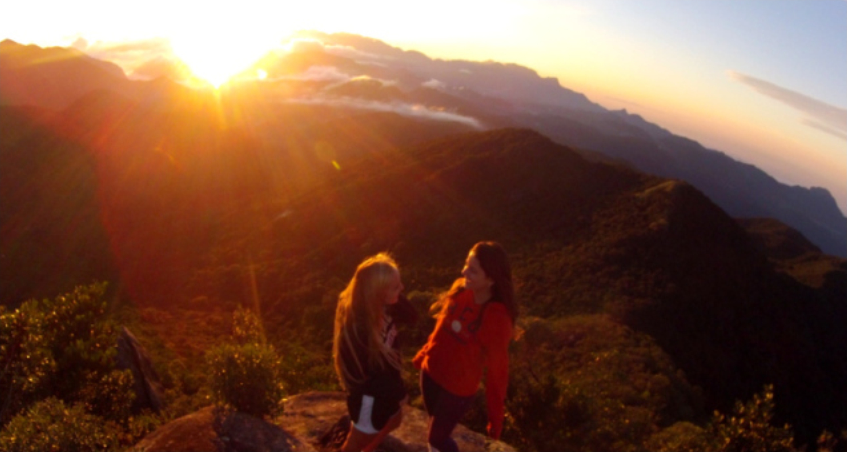 De lá de cima conseguíamos ver toda a cadeia montanhosa de Petrópolis e até mesmo o Parque Nacional da Tijuca, no Rio de Janeiro. Fizemos um delicioso café da manhã lá em cima: a Gaia levou pão fresquinho e o Rodrigo levou fogareiro para fazermos chocolate quente.