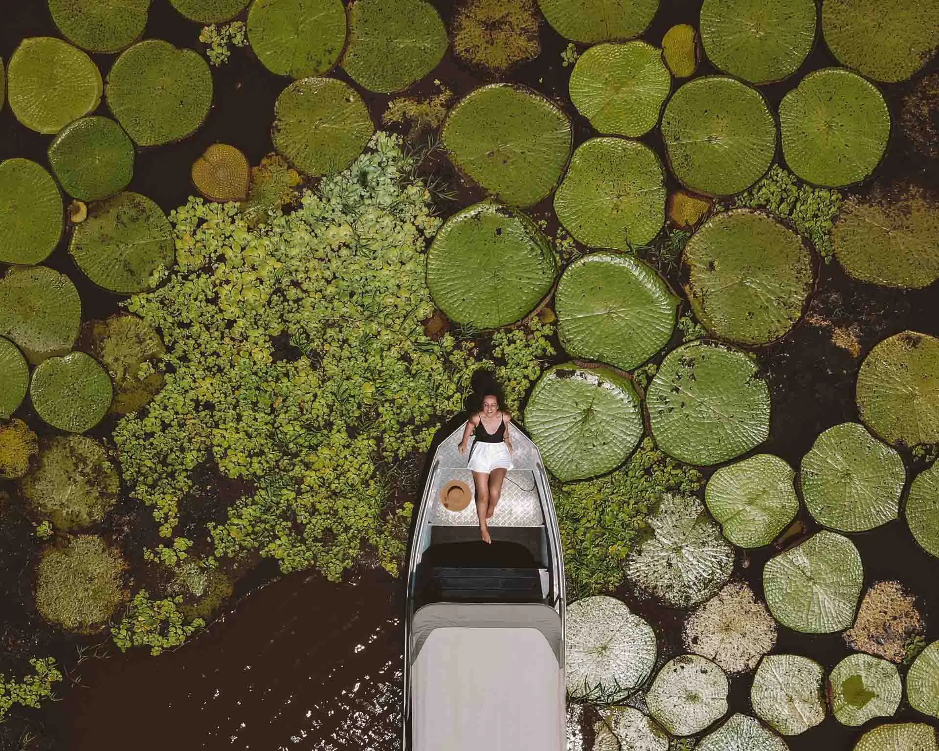 - Dia 02: Passeio de barco pelo Canal do Jari com Trilha das Preguiças + Jardim da Vitória Régia + Lago Preto + Pôr-do-sol na Ponta do Cururu.