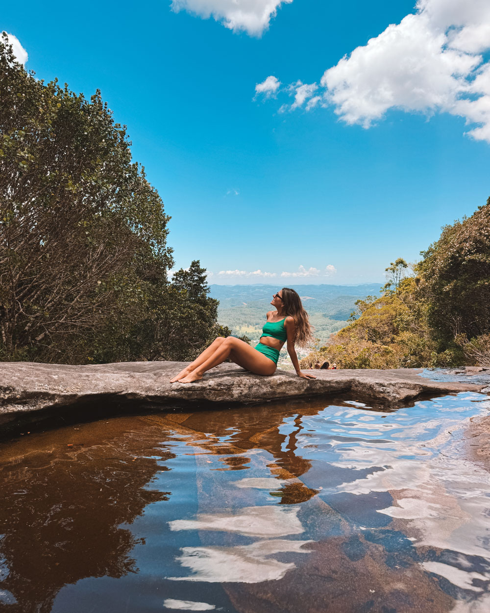 #DicaDaNanda: Para chegar até as piscinas, prepare o fôlego! É necessário subir uma espécie de escalaminhada na pedra por cerca de 90 m, utilizando um corrimão de corda como apoio. O retorno é feito por uma trilha diferente, que inclui degraus de madeira fixados na rocha.