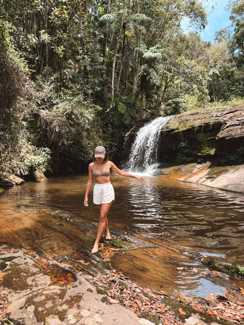 Outro lugar que não pode ficar de fora da sua lista de o que fazer em Pedra Azul é conhecer a Reserva Águia Branca. Ela é um lugar bem legal pra passar o dia, com trilhas e cachoeira. Nós fomos na cachoeira e podemos dizer que é belíssima e ótima para nadar.