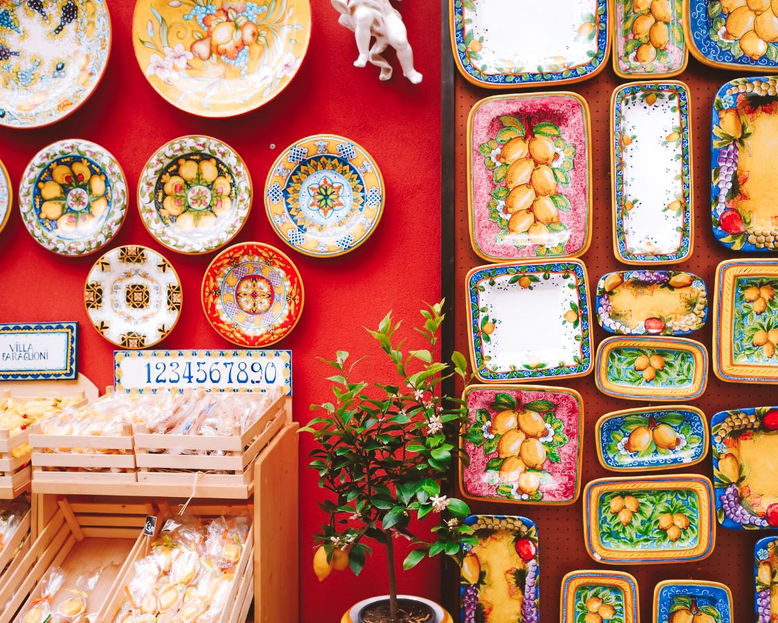Nem só de praias vive Positano. Depois de curtir a paisagem a beira-mar, não deixe de passear pelo centro histórico da vila. Ao caminhar pelas ruazinhas, você verá muitas lojinhas de cerâmica. Aliás, a região é famosa por suas belas peças.