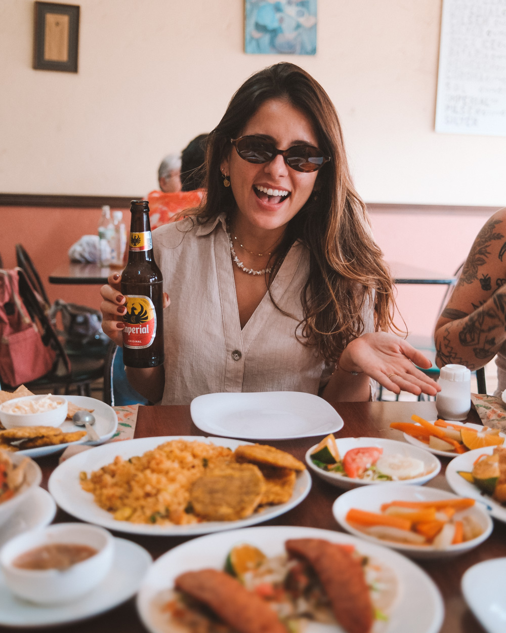 A comida, em compensação, é maravilhosa. Lá provamos o melhor da comida caseira costarriquenha. Tudo é bem servido, o sabor é divino e o melhor de tudo é que o preço é justíssimo. A média dos pratos é entre 7 e 10 dólares.