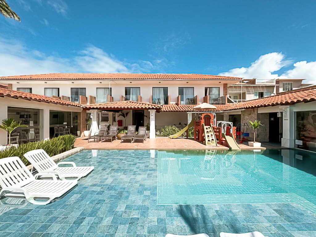Além de tudo, o hotel dispõe de piscina cercada de palmeiras, quadra de vôlei, salão de jogos e ares kids. Além disso, também há bikes para aluguel. Os hóspedes elogiam as instalações o atendimento, o café da manhã e a localização.