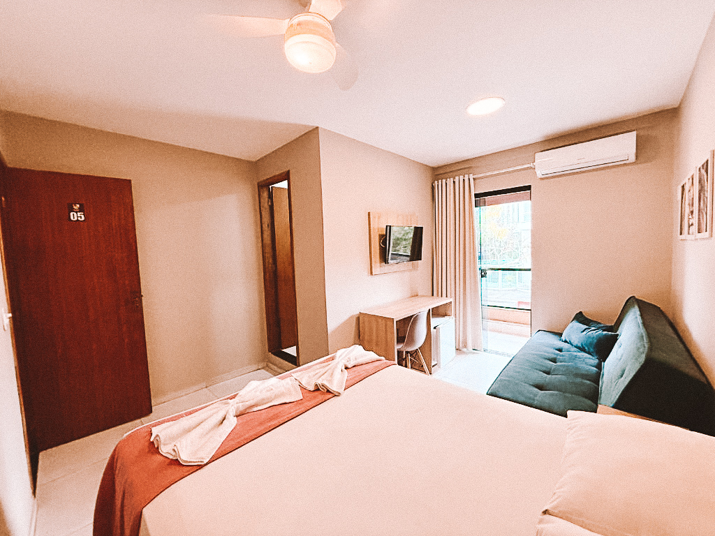 Seus quartos são básicos, entretanto e oferecem todo o conforto. Há também quartos para famílias, alguns contam com varanda. Além de ficar em bairro nobre, a Praia do Forte está somente a 7 minutos de caminhada. Vale saber que não há café da manhã no local, porém o custo benefício é excelente. Hóspedes elogiam a limpeza, hospitalidade e localização.