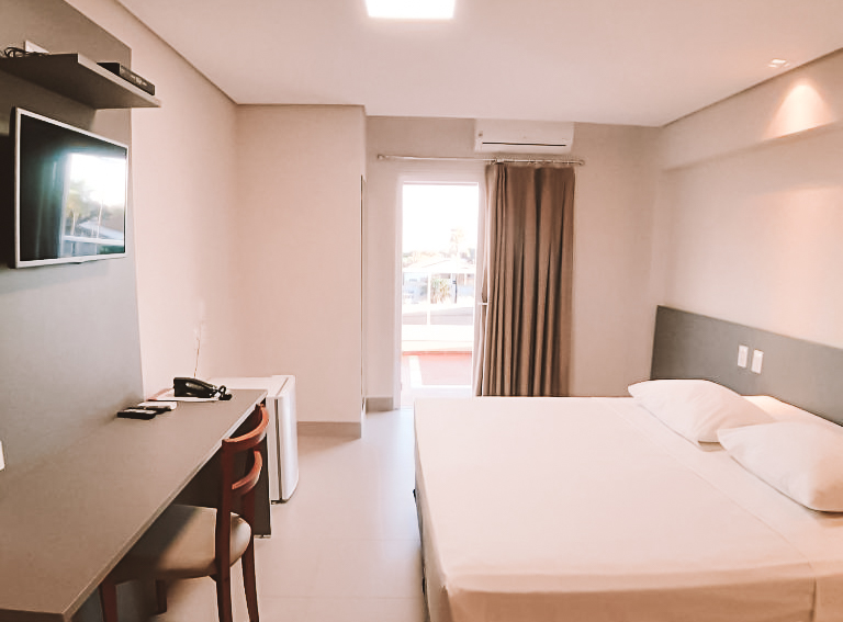 Ah, vale saber que um café da manhã bem gostoso está incluso na diária. Excelente para que vai pernoitar em um hotel Campo Grande (MS).