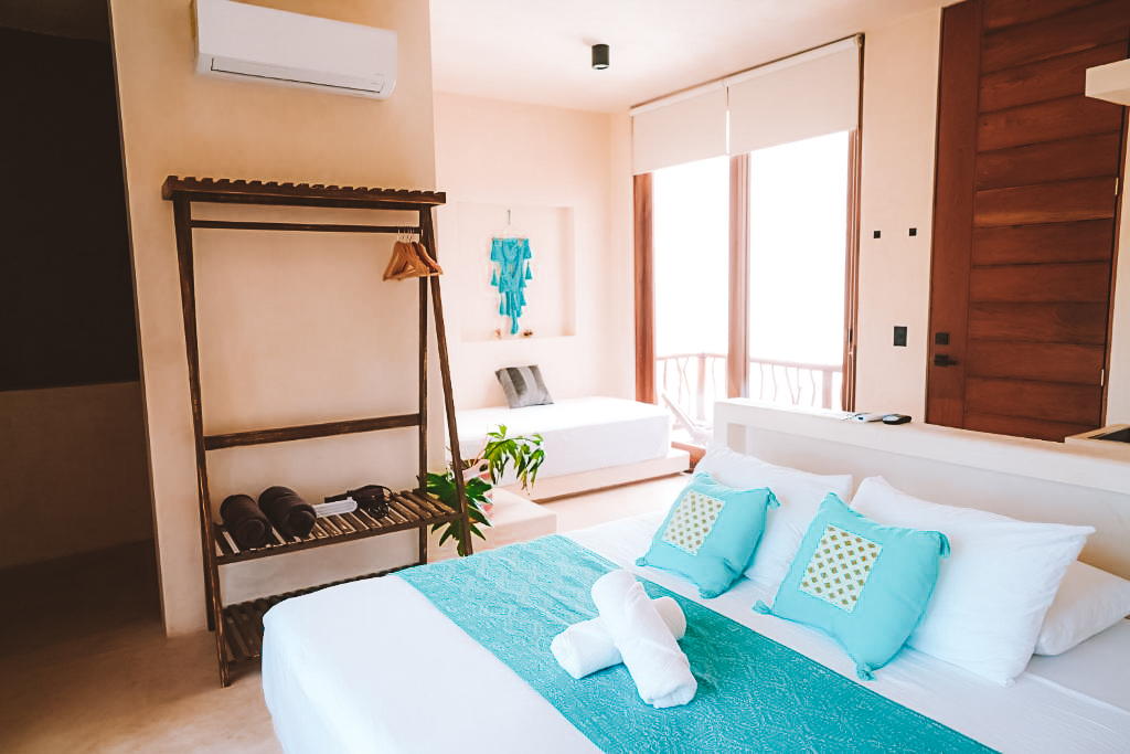 O charme praiano está por todos os lados no Bhoga Boutique Hotel. Ele fica próximo a Punta Cocos e é uma ótima dica de onde ficar em Holbox barato. Seus quartos são amplos e possuem uma varandinha para quem quiser apreciar a vista deitado na rede.