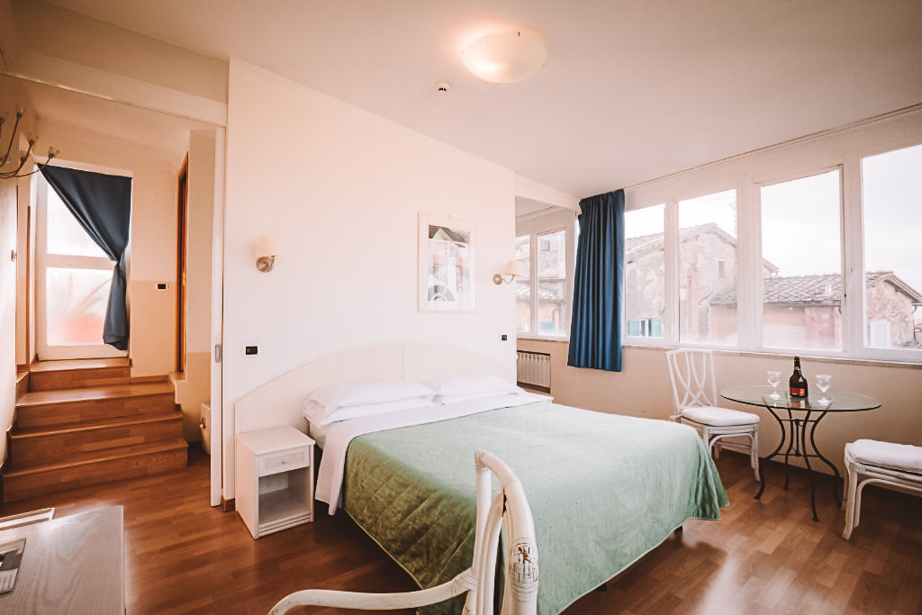 Outra sugestão excelente de onde ficar em Siena é o La Terrazza Sul Campo. Essa casa de hóspedes fica a poucos metros da Piazza del Campo e oferece acomodações muito charmosas. Os quartos contam com mobília muito confortável. As grandes janelas permitem a entrada de luz natural e deixam o ambiente fresquinho.