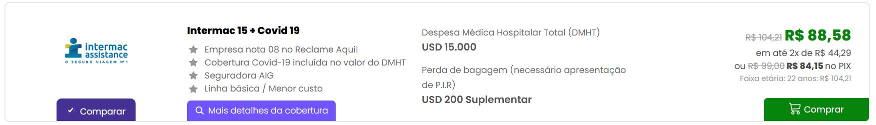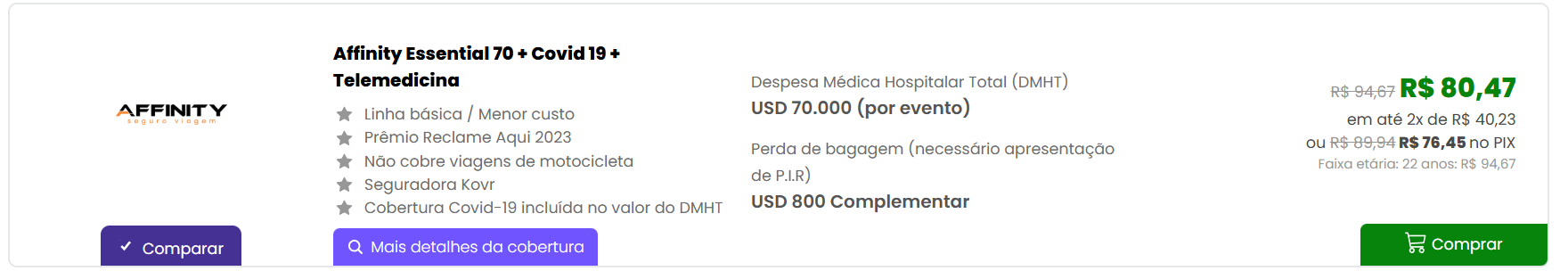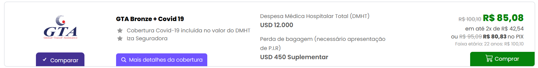 - Cobertura COVID-19: despesas médicas, prorrogação de estadia, traslado e envio de acompanhante em caso de diagnóstico
