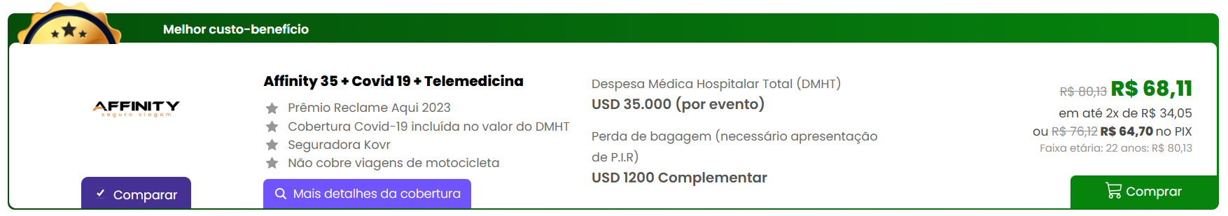 | Seguradora | My Travel Assistant | Affinity | ITA Seguro Viagem |