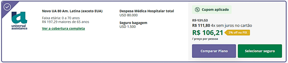 Universal Assistance | USD 80.000 | R$ 106 |
