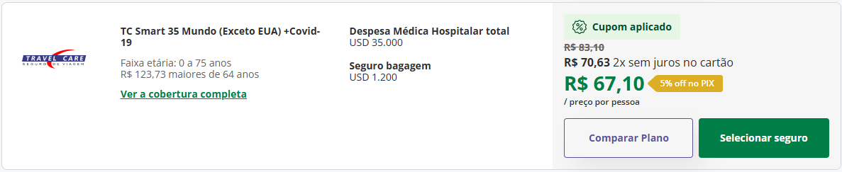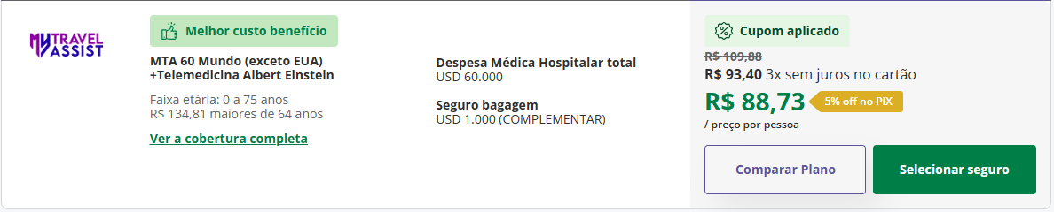 Como você pode perceber, essa é uma opção bem completa. Mas não se preocupe, o preço do seguro viagem Vietnã MTA 60 fica em apenas R$76,30 para uma viagem de 7 dias. Você ainda consegue melhorar esse valor e nós vamos falar sobre isso mais adiante.