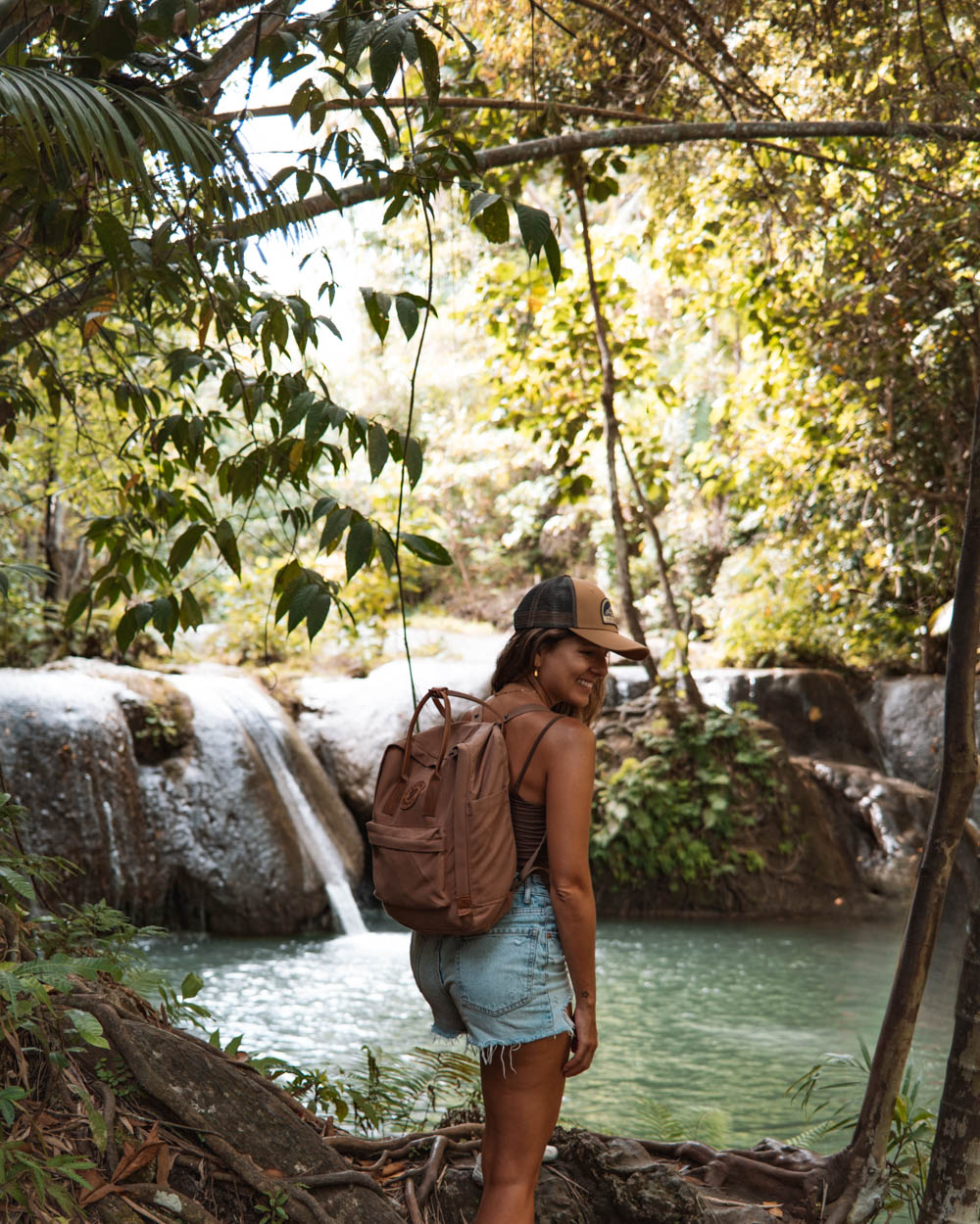 Sem dúvida, esta é a cachoeira mais incrível e popular de Siquijor nas Filipinas! Ela é composta por três cachoeiras diferentes que criam um cenário único! Além disso, a tonalidade da água é um azul que nunca havíamos visto anteriormente. Vale dizer que são vários poços espalhados, então vale a pena ir subindo para ver mais quedas e outros poços. Podemos dizer que ela é a combinação perfeita de água quentinha, ótimo poços para nadar e uma natureza exuberante por toda a sua volta.