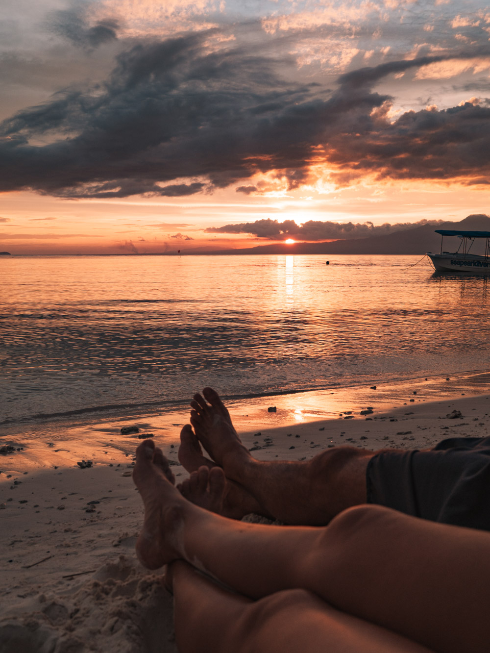 A praia em si é deslumbrante e suas águas mornas fazem a gente querer ficar o dia inteiro por lá. Vale super a pena reservar uma manhã ou uma tarde para curtir a praia e mergulhar muito! Contudo, achamos que a tarde é melhor, especialmente se você quiser admirar um pôr do sol de tirar o fôlego.